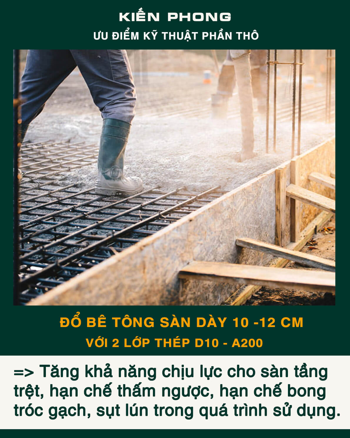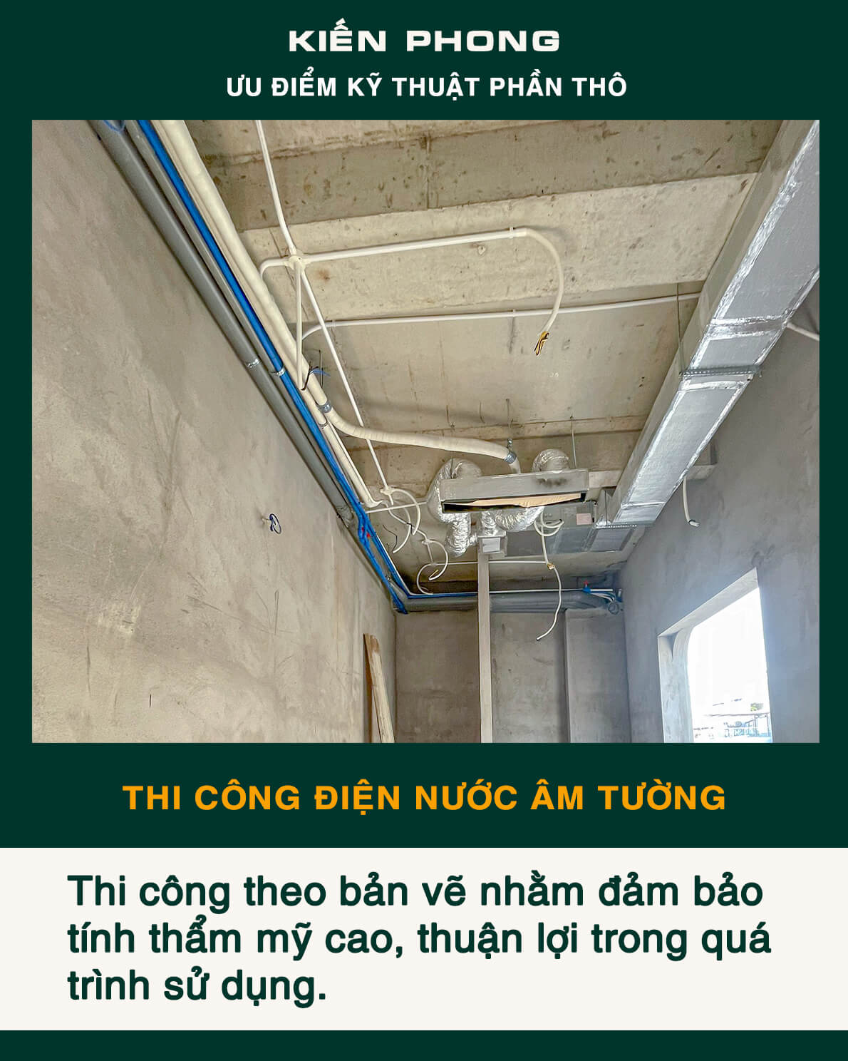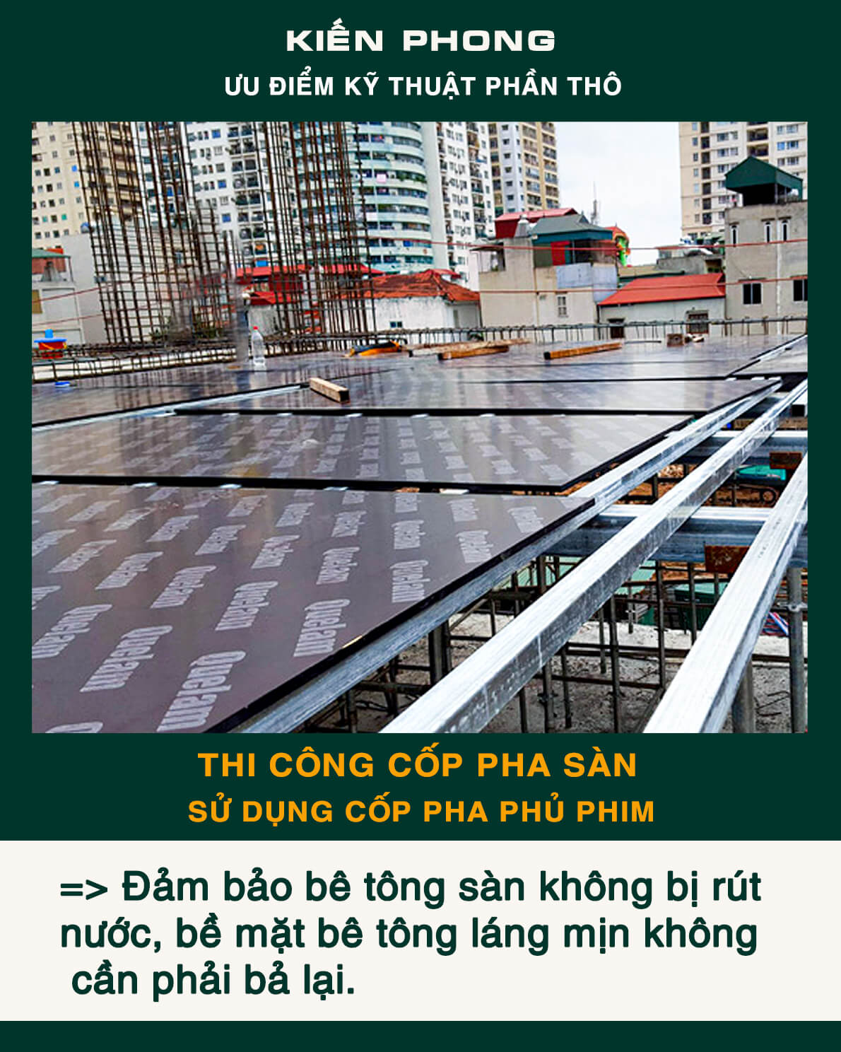 Bên cạnh trang bị đầy đủ thiết bị, coffa, giàn giáo, bao che, để đảm bảo an toàn, tiến độ – năng suất và tiết kiệm trong công tác thi công. Kiến Phong liên tục cập nhật quy trình quản lý chuyên nghiệp, toàn thể đội ngũ kỹ sư, giám sát thi công và mọi công nhân thường xuyên được phổ biến, tập huấn đảm bảo hiểu sâu, nắm chắc và luôn ý thức tuyệt đối chấp hành thi công an toàn và chất lượng.