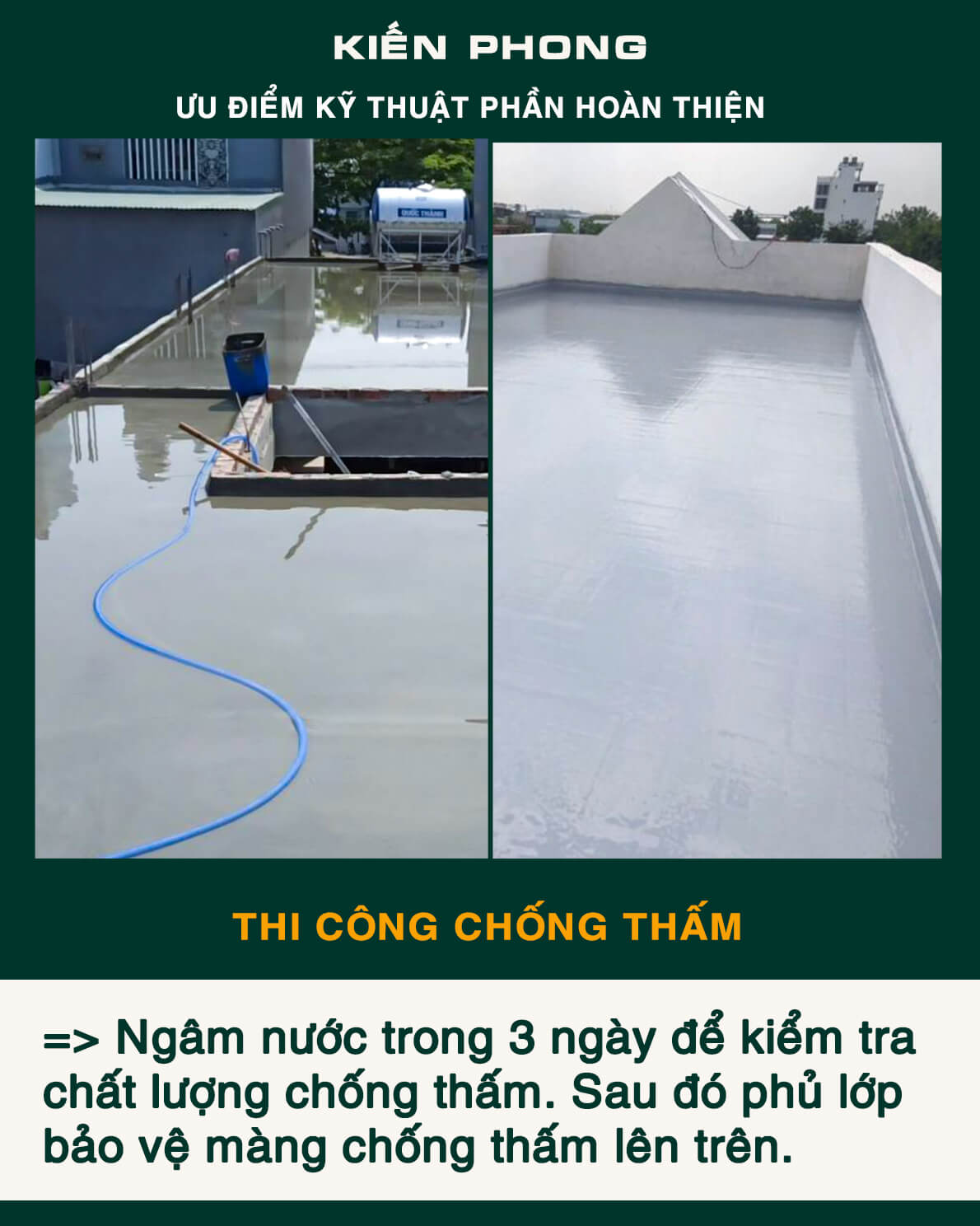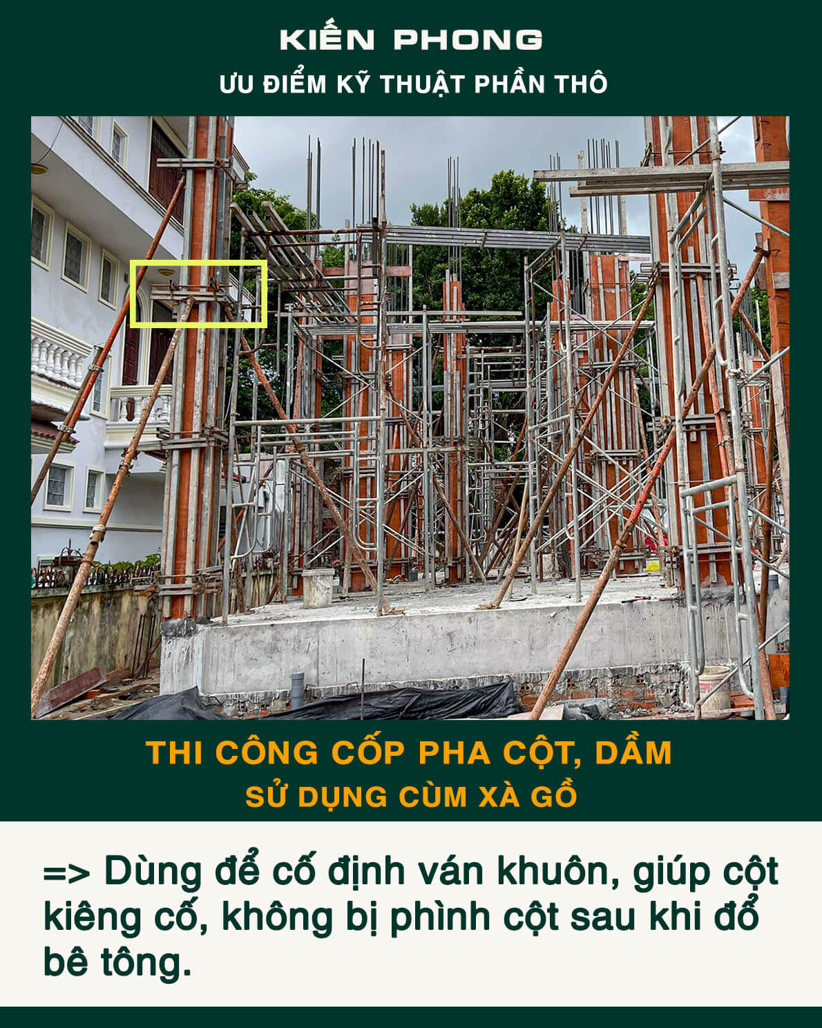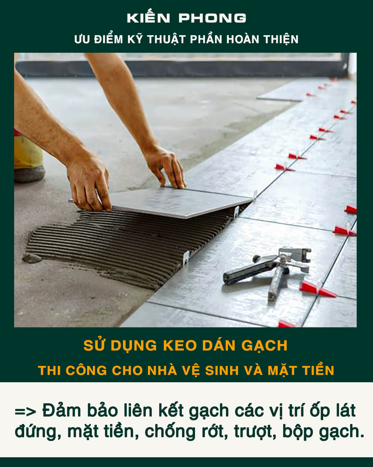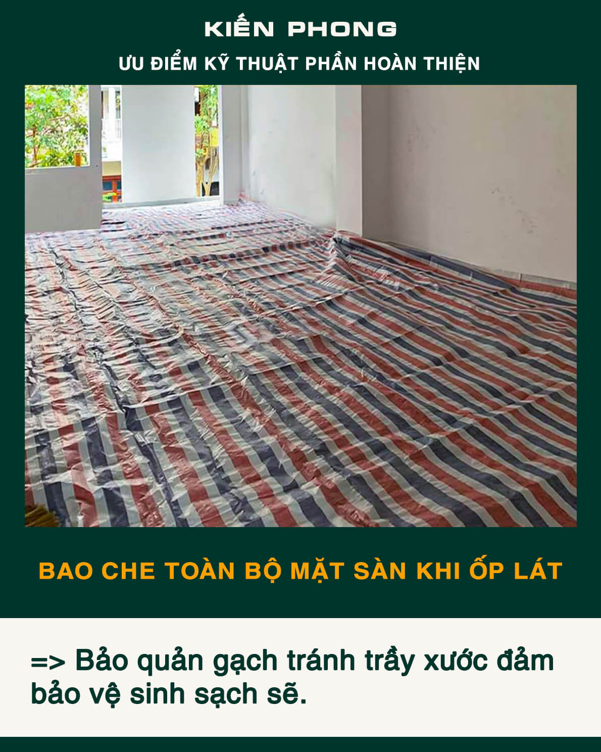 Bên cạnh trang bị đầy đủ thiết bị, coffa, giàn giáo, bao che, để đảm bảo an toàn, tiến độ – năng suất và tiết kiệm trong công tác thi công. Kiến Phong liên tục cập nhật quy trình quản lý chuyên nghiệp, toàn thể đội ngũ kỹ sư, giám sát thi công và mọi công nhân thường xuyên được phổ biến, tập huấn đảm bảo hiểu sâu, nắm chắc và luôn ý thức tuyệt đối chấp hành thi công an toàn và chất lượng.